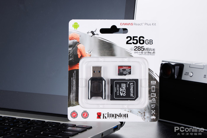 这次我们拿到的两张存储卡都是带USH-Ⅱ读卡器的256G版本,包装上跟金士顿自家其他系列产品并没有太大的差异,保持了金士顿一贯的低调风格,外包装只有最高读取速度的标识能充分体现出它的王者实力。