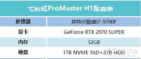 性能方面,为了符合NVIDIA RTX STUDIO的规范,七彩虹ProMaster H1采用英特尔酷睿i7-9700F处理器,最高可睿频至4.7GHz,拥有8核8线程。