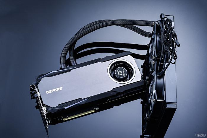iGame GeForce RTX 2070 SUPER Neptune OC这款显卡与上文中的同门兄弟最大的不同便是其使用了一体式水冷的散热设计。Neptune OC的显卡核心上方的铜制冷头由iGame“鳃纱”技术打造而成,具有规模庞大的微水道,配合七彩虹定制的240毫米冷排,以及一对更加静音的流体长桨扇叶定制风扇,使其具有比一般显卡风冷散热器更加强大的解热效率。在按下显卡接口面板上的一键超频按钮后,Neptune OC最高可自动超频至1815MHz。