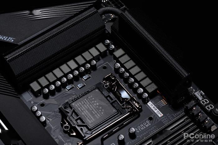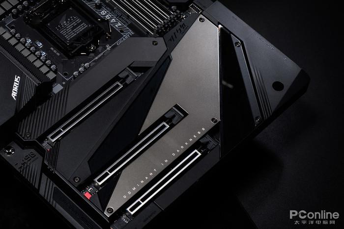 整块主板一体感非常强,正面背面都有大面积的装甲覆盖。