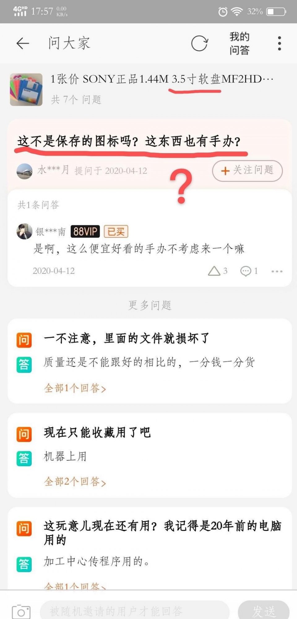 最近,一张关于索尼3.5寸软盘的淘宝问答截图在网络上引起了讨论,起因是有人问这不是保存的图标吗?这东西也有手办?这让不少人开始感叹,软盘已经成为时代的眼泪。
