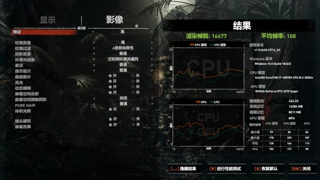 ▲《古墓丽影:暗影》的高画质测试,平均帧速108fps,老款RTX 2070 8GB的平均帧速是91fps。