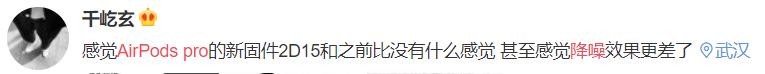 此外,苹果昨天还推出了适用于AirPods Pro的新固件,版本号由此前的2C54/2B588升级至2D15,更新内容没有说明,不少用户更新了新固件后给出了反馈。