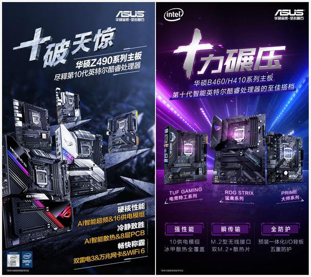 2020年4月30日,华硕正式率先发布多款Z490、B460、H410在内的400系列主板,全新阵容完美支持第10代智能英特尔酷睿处理器,尽释10核心的i9-10900K的潜能,提供超群绝伦的性能表现。其中高阶Z490系列主板格外出众,包括ROG玩家国度、ROG STRIX猛禽、TUF GAMING电竞特工、PRIME大师,以及全新推出的PROART创艺国度系列,新品近20款,可充分满足硬核发烧友、游戏玩家、DIY爱好者和专业内容创造者的多样需求。全新华硕Z490系列主板拥有多项华硕独家顶尖技术,提供无与伦比的卓越性能,可充分释放处理器的全部效能,给予用户更快、更智能、更身临其境的新体验!
