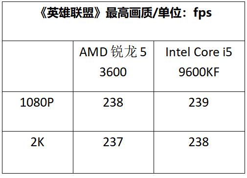 《英雄联盟》对于硬件的要求不算很高,两款处理器基本上都达到了游戏帧速的极限,都能保证极为流畅的游戏体验。不过,AMD锐龙5 3600的处理器占用率依然远低于Intel Core i5 9600KF,可以留出更多的处理器资源供后台程序使用,充分避免处理器资源不足造成游戏卡顿。