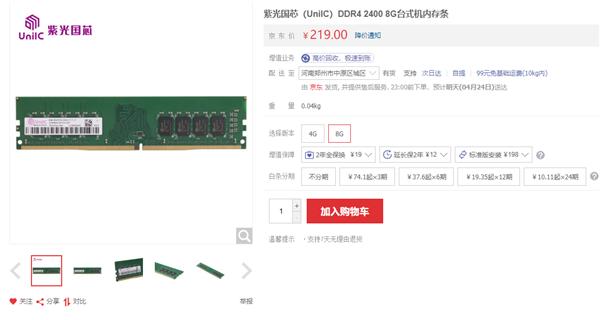 现在,紫光集团旗下紫光国芯(UnilC)的内存也上市了,而且公开上架京东商城,价格也如你所愿。