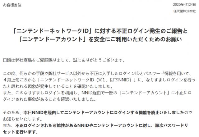 受影响的用户将收到官方发送的电子邮件通知,任天堂警告称这些账户中的余额和信用卡等可能会在"我的任天堂商店"或其它任天堂网店被非法使用。