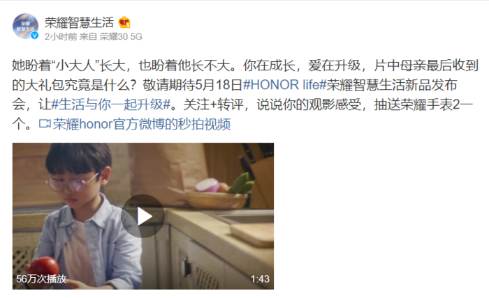 荣耀全场景新品5.18发布,暖心短片抢先看