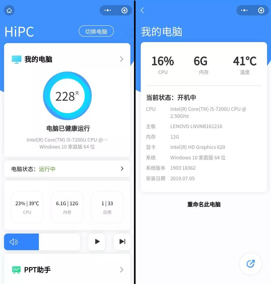 绑定好之后手机端会显示出电脑的基本信息,cpu温度,使用率,内存,型号,等