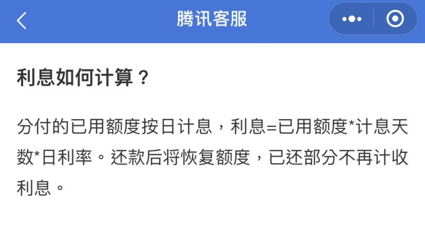 3、最后是大家最关心的利息,在利息方面,微信“分付”按照用户实际使用天数计算,还款时支付累计的利息。“分付”的日利率为0.04%。