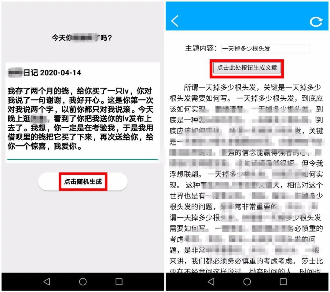 “日记生成”,点击生成,