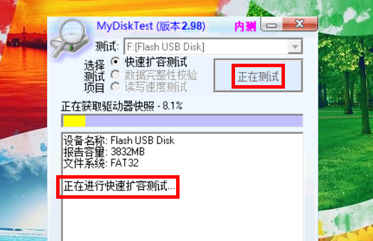 运行U盘检测工具。
