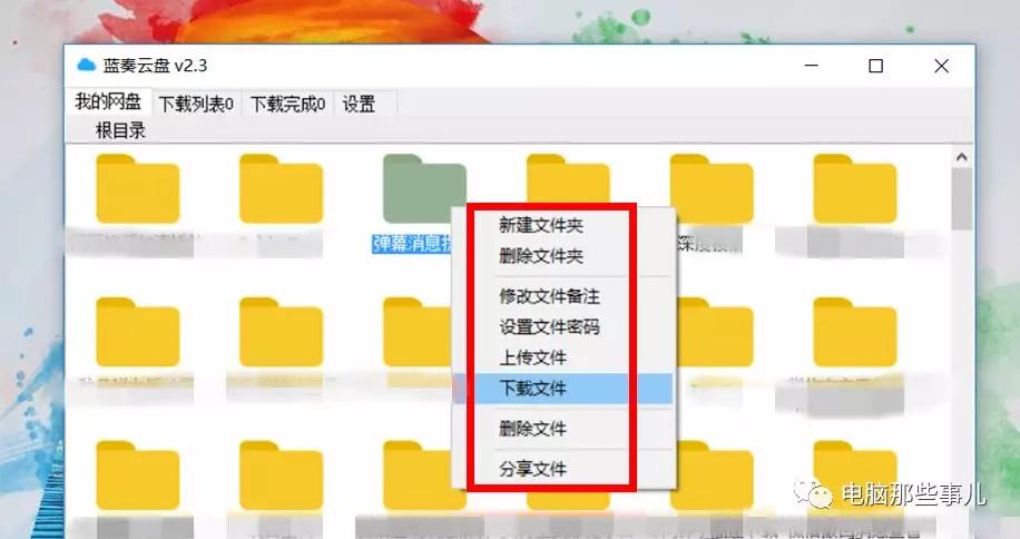 4、接下来的操作和百度网盘客户端就差不多啦,可以单击右键下载文件、分享文件,上传文件等。