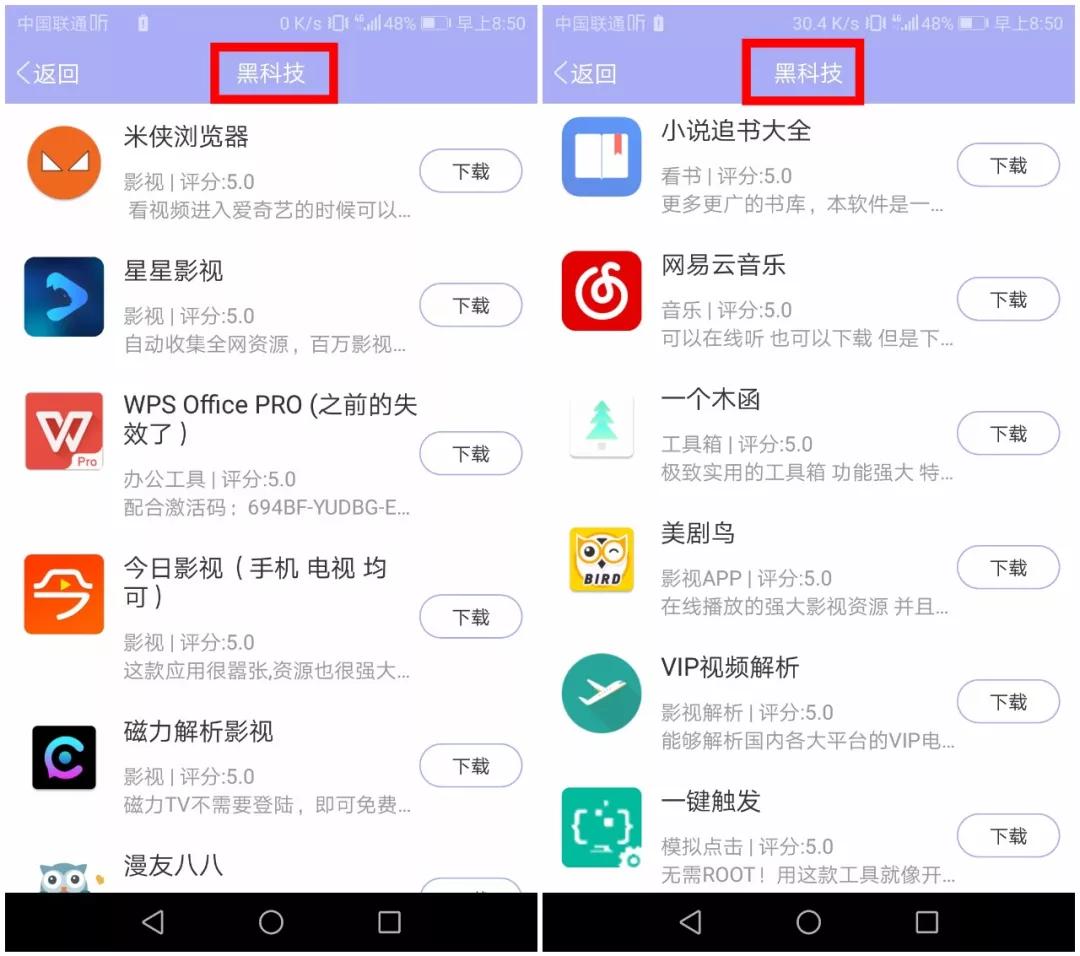 3、点开“黑科技”,可以看到很多功能强大的黑科技app,比如我们之前介绍的米侠浏览器、一个木函、漫画工具等。到底这些工具能干啥,懂的小伙伴不用我多说了吧,绝对让你满意。