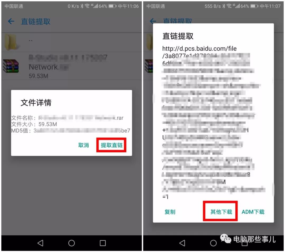 3、点击文件,会出现“直链提取”页面,这时可以选择“其他下载”,即可用手机自带的浏览器快速下载文件,可以看到“事儿哥”这里速度还是不错的~