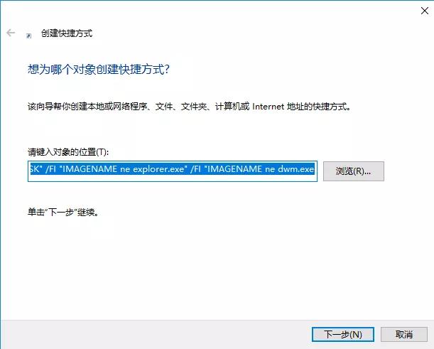 taskkill /F /FI "USERNAME eq 用户名" /FI "IMAGENAME ne explorer.exe" /FI "IMAGENAME ne dwm.exe