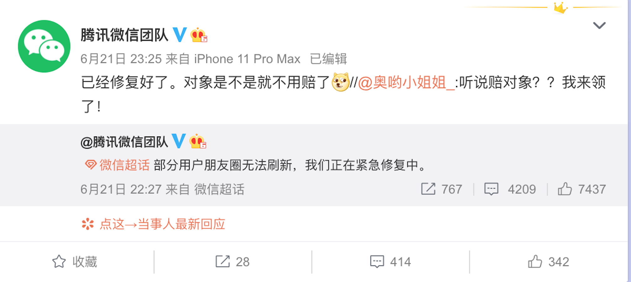 微信官方回应成功解决尴尬