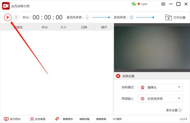 第一步、双击打卡电脑桌面图标,选择“录制模式”为“摄像头”;