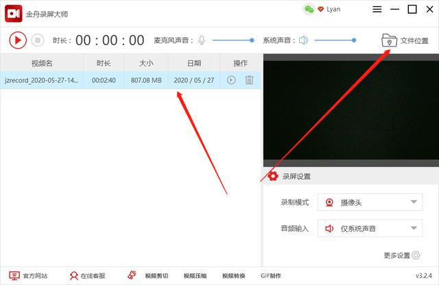 第八步、录制完成后,可打开右上角的“文件位置”,找到文件即可。