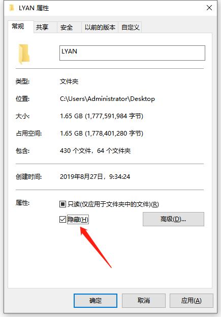 1、选中自己要加密的文件夹,右键选择属性,然后在常规窗口的属性里面勾选“隐藏”。