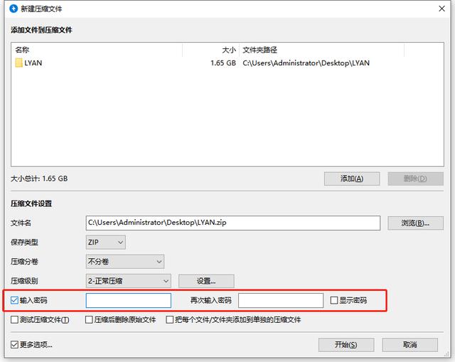 4、最后,选择“开始”;压缩完文件夹请记得要把原文件夹删除;要想看文件的时候输入密码解压后就能看到了。