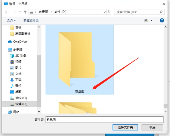打开其他分区,选中我们新建的文件夹,再点击下面的“选择文件夹”按钮即可。