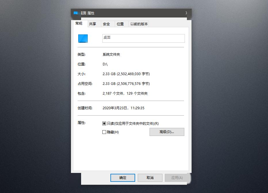在我的电脑右键桌面文件夹,点击位置,接下来又到了为所欲为时间,想把桌面存放文件夹指向到哪都可以。