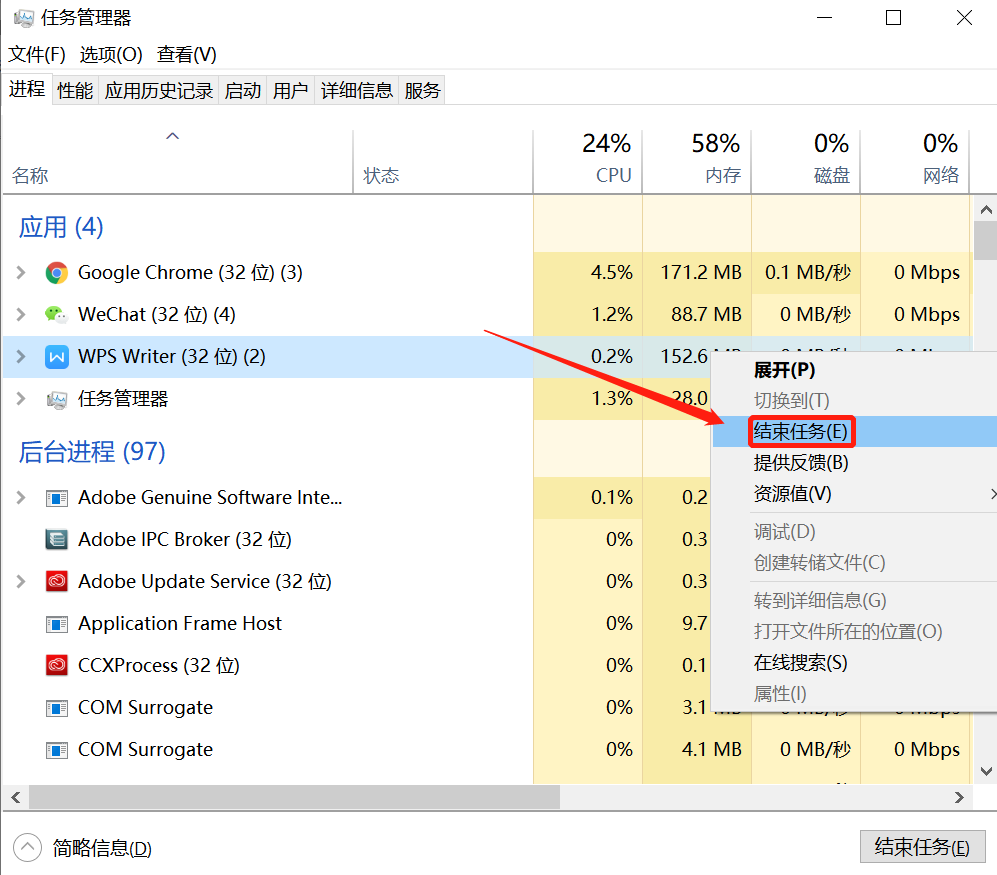 根据自身情况,可以右键点击不常用的程序,然后选择[结束任务]。