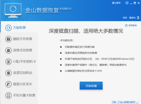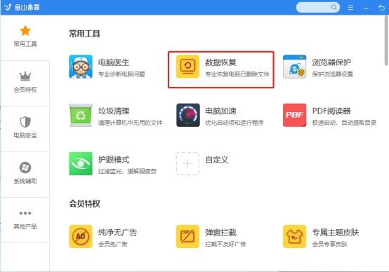 恢复硬盘丢失数据,我们还可以直接使用金山毒霸数据恢复大师。