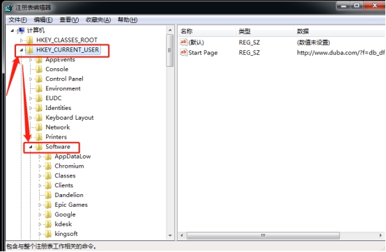 在注册表中打开HKEY_CURRENT_USER文件夹,然后再找到并打开Software文件夹。