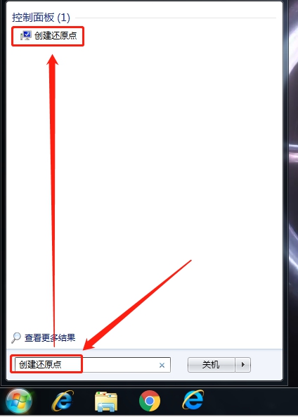 在“开始”菜单搜索框中输入“创建还原点”。