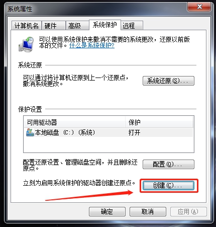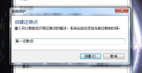 点击搜索出的“创建还原点”,然后点击“创建”并在新页面中输入一个描述即可。