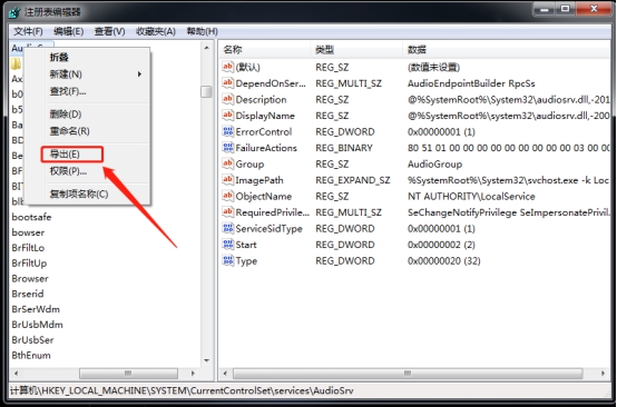 在注册表编辑器中找到并右键点击需要备份的注册表项,选择“导出”。