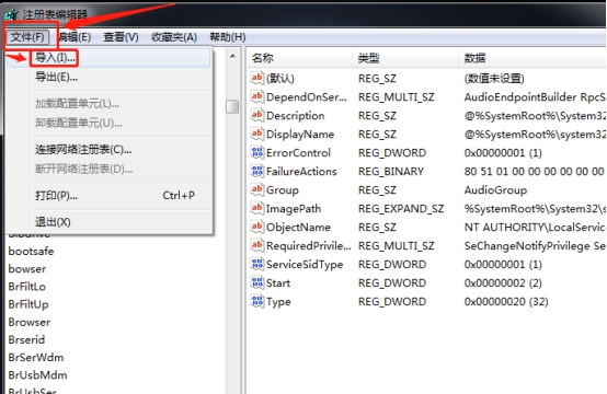 然后打开注册表编辑器的左上角“文件”,选择“导入”之前备份的注册表副本即可。