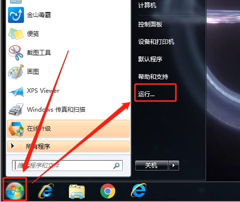 点击桌面“开始”打开菜单,选择“运行”;或直接使用组合键“win+R”唤出运行页。