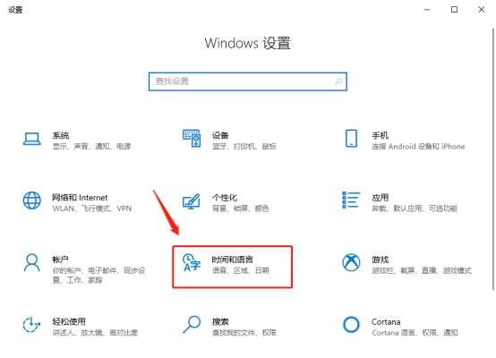 在设置页中选择“时间和语言”,点击进入。