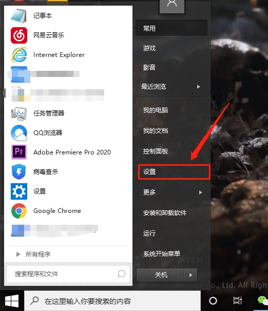 首先,点击桌面左下角的微软“开始”菜单,选择打开设置。