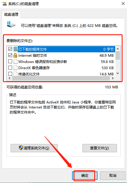 勾选上需要删除的文件,然后单击[确定]即可快速清理电脑垃圾了。