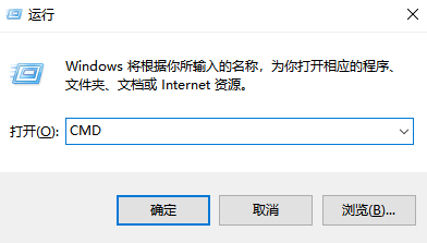 首先,使用组合键[win + R]调出运行框,然后在对话框中输入[CMD]后点击下方确定。