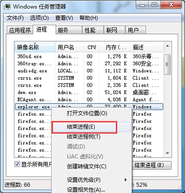 在“进程”选项页中找到“ explorer.exe”应用程序进程,在右下角找到“结束进程”,然后单击“确定”。