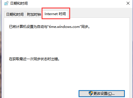 在新弹出的“日期和时间”设置页中,切换至internet时间设置页,单击下方的更改设置。