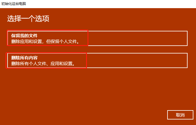 单击[删除所有内容]。在点击删除内容之前,注意先备份好系统磁盘上的数据。