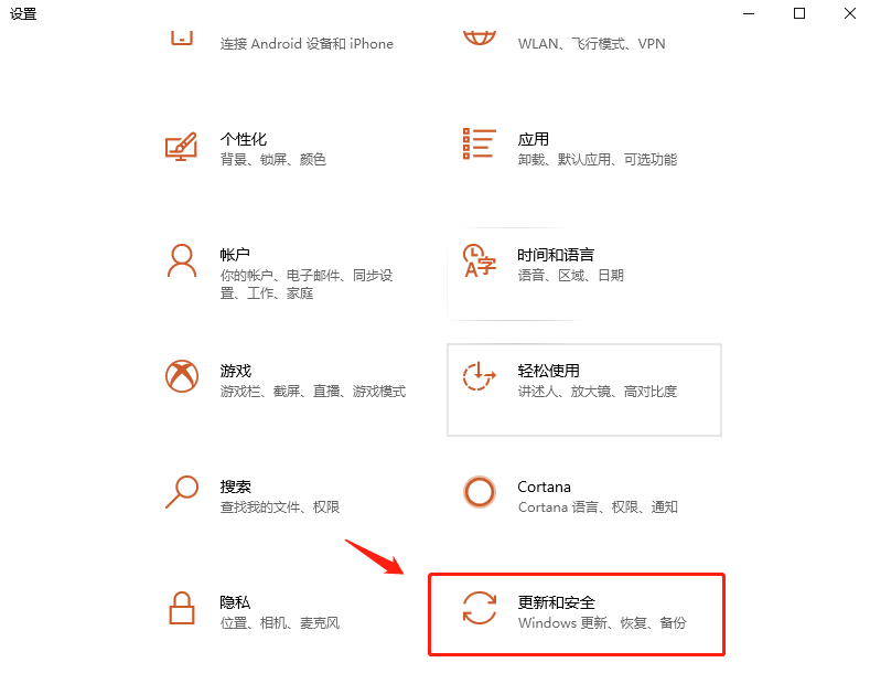 然后在弹出页面中选择[更新和安全性]