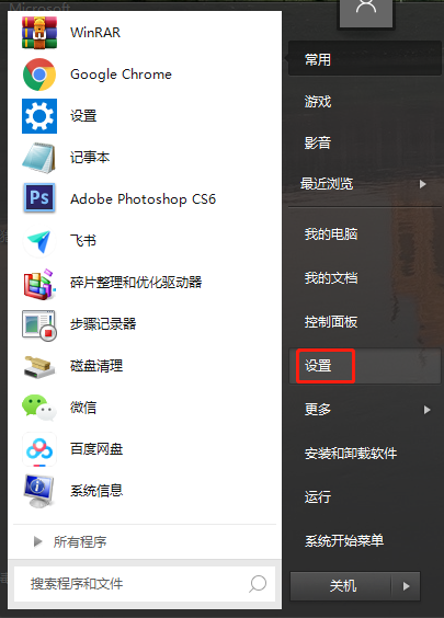 首先,单击[开始]菜单栏,选择[设置]。