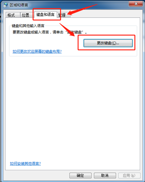 在键盘和语言选项下选择点击“更改键盘”按钮。