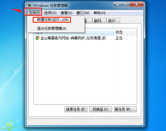在任务管理器页面中,单击左上角的“文件”,然后选择“新建任务”。