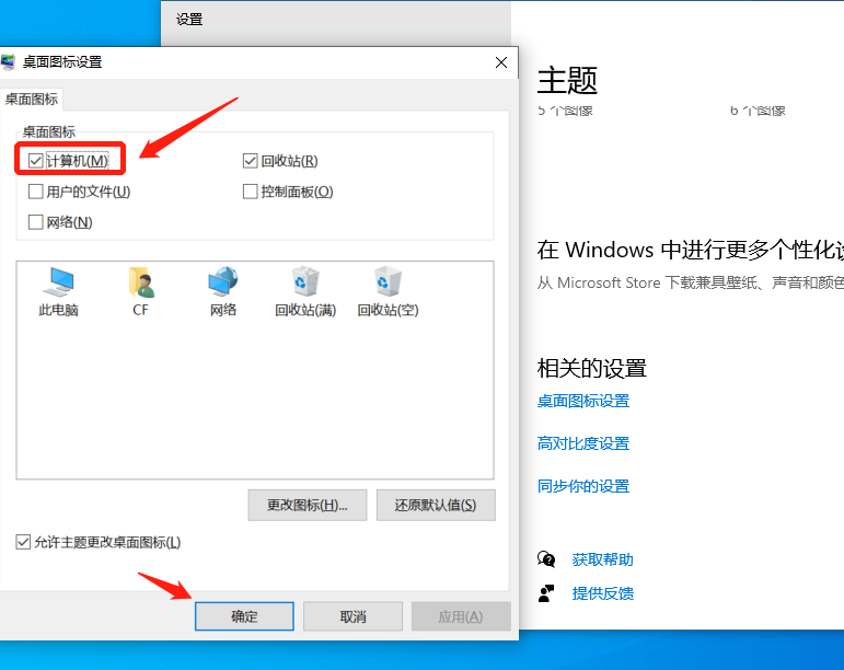 然后在“桌面图标设置”窗口中,勾选上“计算机”选项并点击确认。