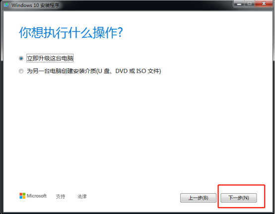 4.启动后一种选择升级这台电脑,然后点击下一步,开始升级,等待升级完成,即可。