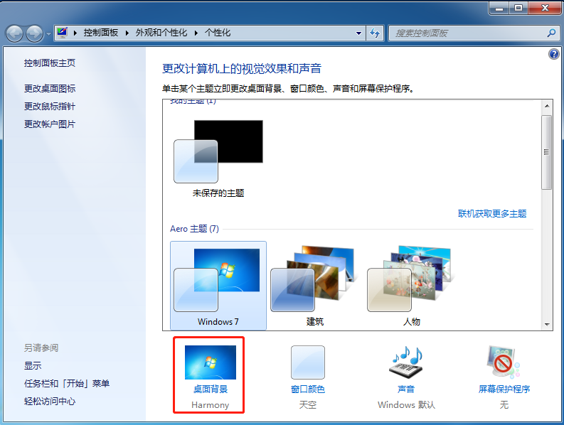 桌面空白处右键点击选择个性化后,在设置页选择下方的“桌面背景”。