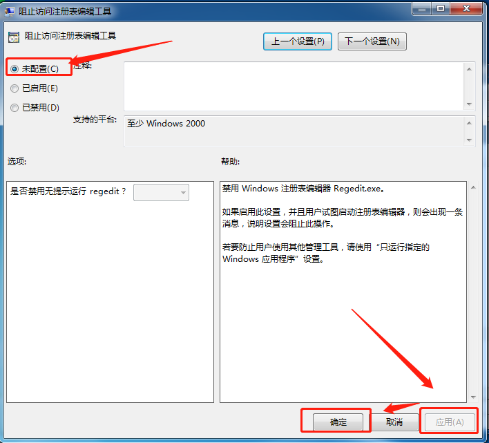 若已经是“未配置”状态,改选其他状态点击“应用”后,退出窗口再回来改为“未配置”状态即可。